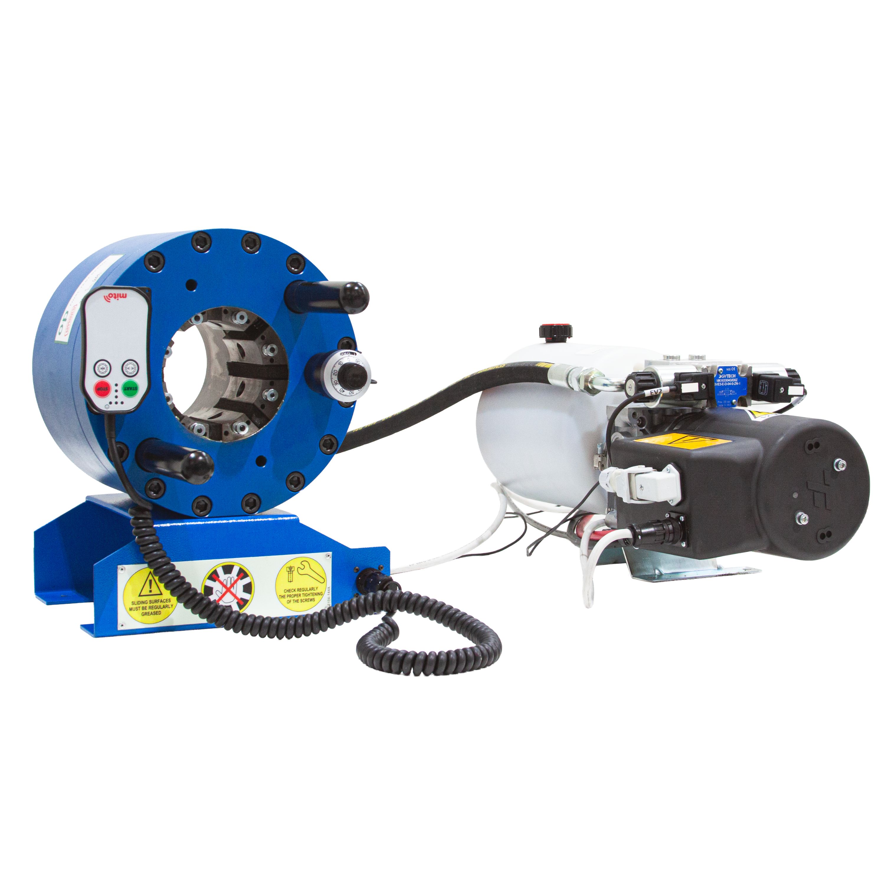 La pressa Tubomatic H83/E 12V LIGHT è la macchina ideale per raccordare tubi flessibili oleodinamici su veicoli d’assistenza come furgoni e officine mobili. Con una forza di pressatura di 135 tonnellate, è in grado di gestire tubi fino a 1” con 6 spirali, 1”1/2 con 4 spirali e 1”1/4 con 4SH, garantendo prestazioni elevate anche nelle applicazioni più impegnative.